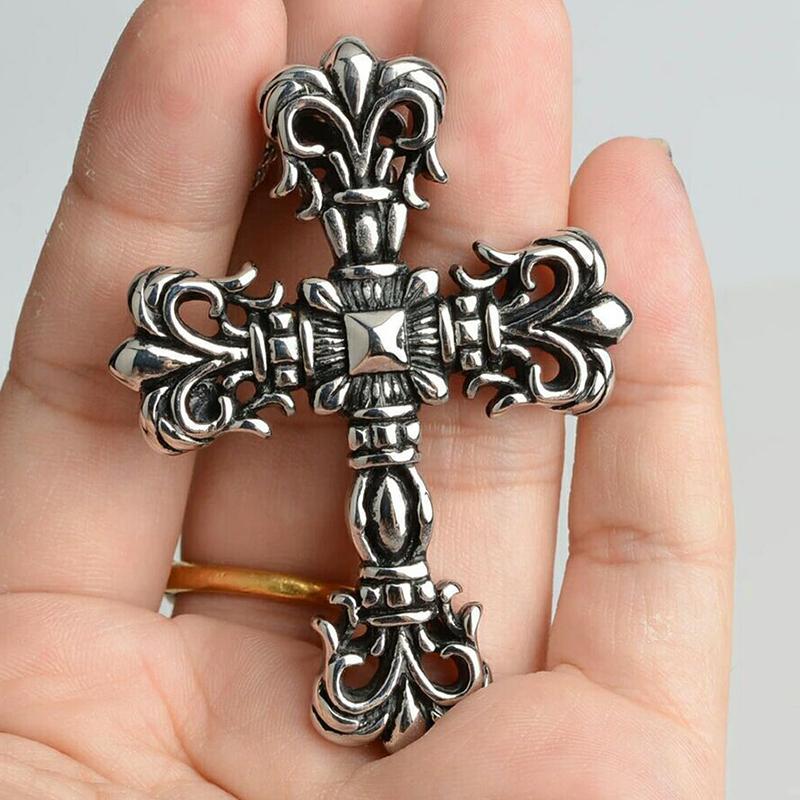 Vintage Viking Cross Pendant Necklace For Women Men Hip Hop Rock Copper Color Stainless Steel Chain On The Neck Jewelry Gifts
