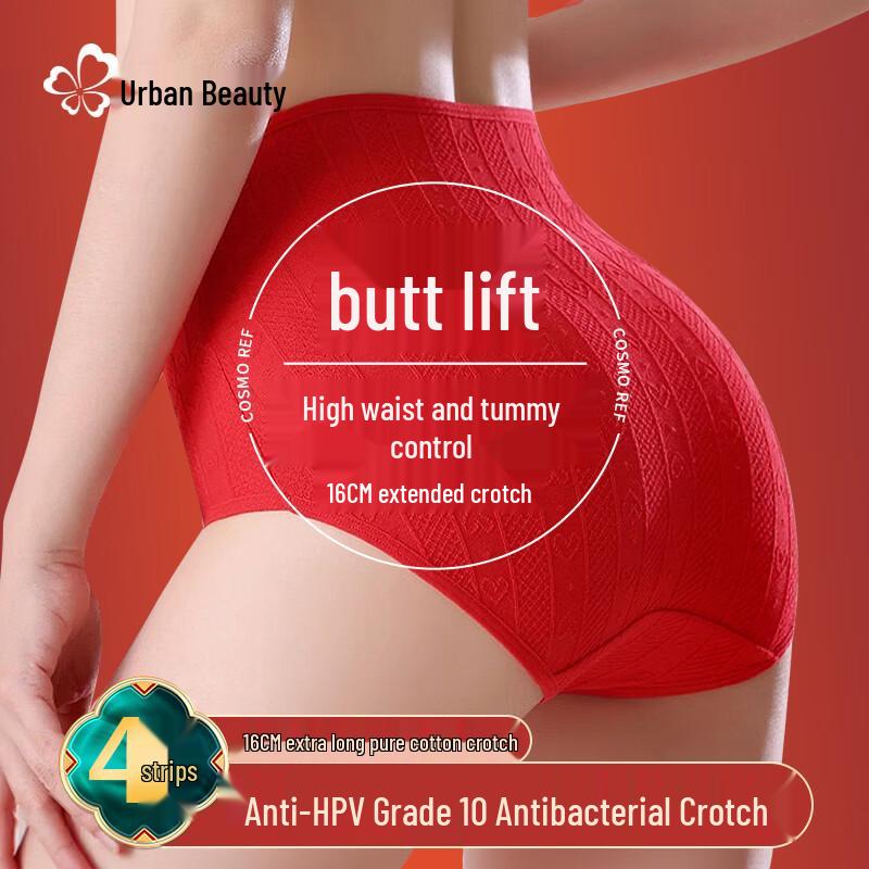 Cosmo Lady Damen Rote Baumwolle High-Waist Bauchweg-Slips 4er-Pack