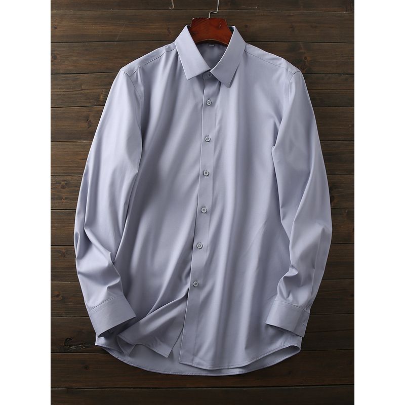 Bamboo Fiber Seamless Non-Ironing Export Tail Goods Men Business Casual Solid Color Shirt Anti-Wrinkle Stretch Long Sleeve Shirt