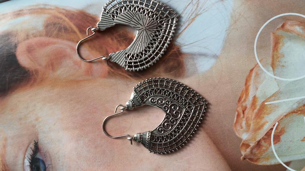 OHRRINGE Ohrringe im Gypsy-Stil, sorgfältig geschnitzt. Sie sind in 22 Tagen mit Sendungsverfolgung in Italien angekommen. Super schnelle Lieferung. Gut in Luftpolsterfolie eingewickelt, sind sie unbeschädigt angekommen.. Verpackung: Sie werden in einer Plastiktüte ohne Kartonverstärkung geliefert. Ausgezeichnetes Preis-Leistungs-Verhältnis.. Die Farbe des Metalls ist brüniertes Silber aus einer Zinklegierung. Hinterer Verschluss: Metallhaken. Keine Mängel festgestellt. Der Kauf ist zu empfehlen👌👌👌👌👌