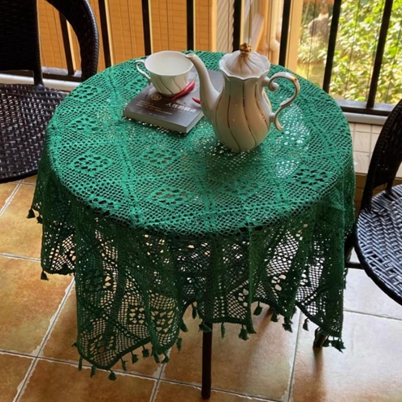 Europäische grüne Hohltischdecken Retro-Stil gestrickte Häkelspitze Schreibtischunterlage Haushalt verschleißfest rutschfest runde Tischunterlage