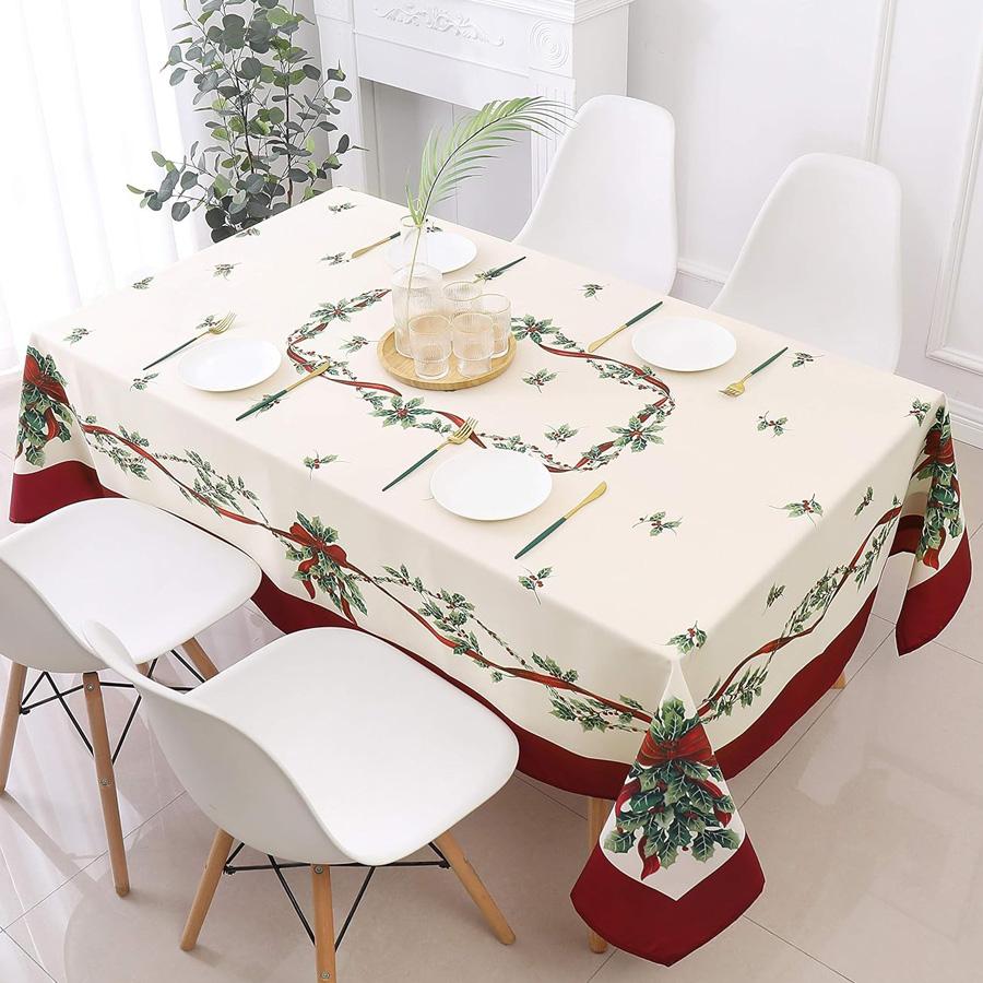 Weihnachts-Stechpalme Rechteckige Tischdecke Party-Tischdeko Winter Weihnachtsfeiertag Küche Esszimmer Tischdecke Weihnachtsdekoration