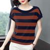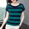 Women Casual Stripe Print Short Sleeve Blouse for Spring/Summer