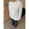 Spring Autumn Solid Color Round Neck Buttons T-shirt Male Long Sleeve Casual Fashion Tee Bottomed Top Men