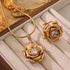 Mittelalterliches Vintage Schmuckset Vintage Rose mit Zirkonia Halskette Brosche Ring Ohrstecker