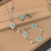 Vintage Italienisch Buchi Klee Blau Phosphor Grau Halskette Armband Ohrringe Blumenset Premium Vielseitiger Schmuck