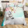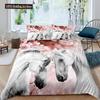 Weißes Pferd Bettbezug Set Queen Größe 3D Ross Druck Bettwäsche Sets Wildtiere Bettdeckenbezug Tiere Tagesdecke Bezug Steppdeckenbezug