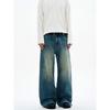 Blaexit American-Style Cleanfit Washed Whiskered A-Line Dark Blue Jeans Unisex Loose Straight Wide-Leg Pants