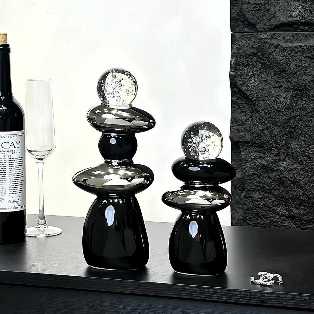 Ceramic Handicrafts Pile Pebbles Geometric Crystal Balls Stacked Stone Statue Decorative Figurines Home Decoration Accessories