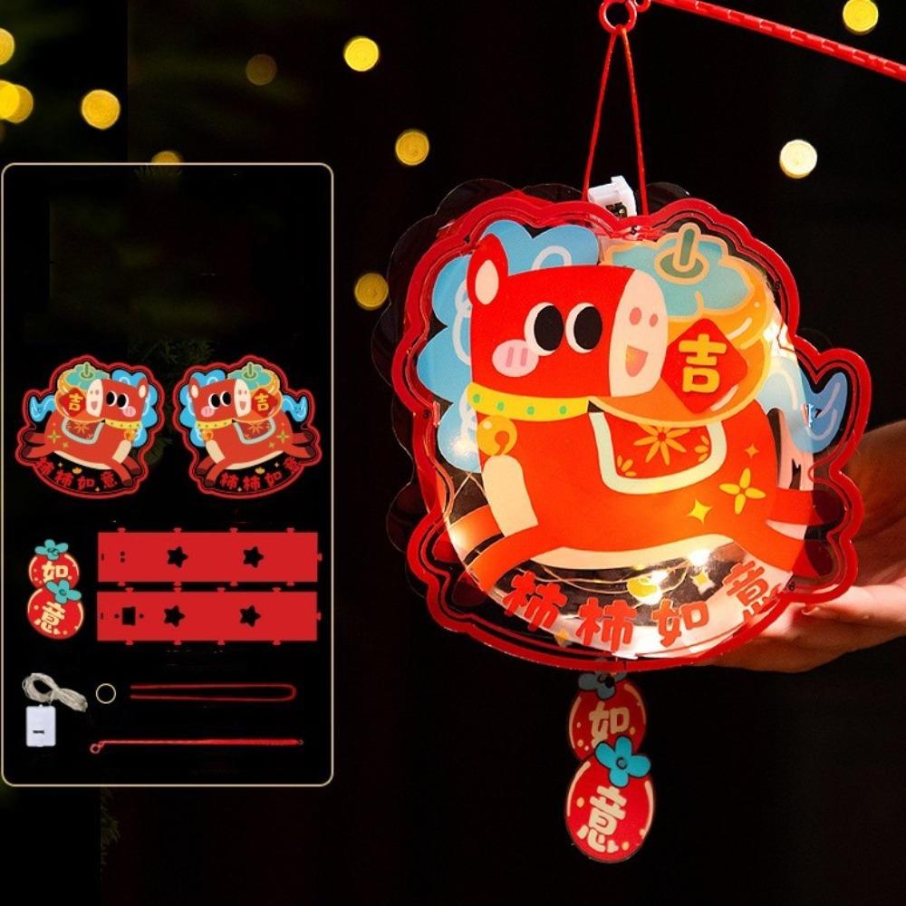 Cute Cartoon Pony Pattern Lantern Glowing DIY Material Bag Spring Festival Lantern Handmade Portable Horse Lantern Home Party