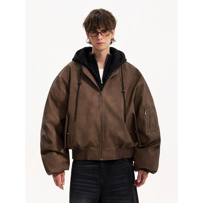 Blaexit Suede Silhouette Faux Two-Piece Quilted Jacket Men's Bomber Cotton Jacket American Style Pilot Jacket Cotton Coat