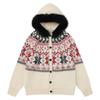 51 Hip-Hop Fair Isle Snowflake Fur Collar Red Sweater Cardigan Unisex Winter Thick Lazy Hooded Knitted Jacket