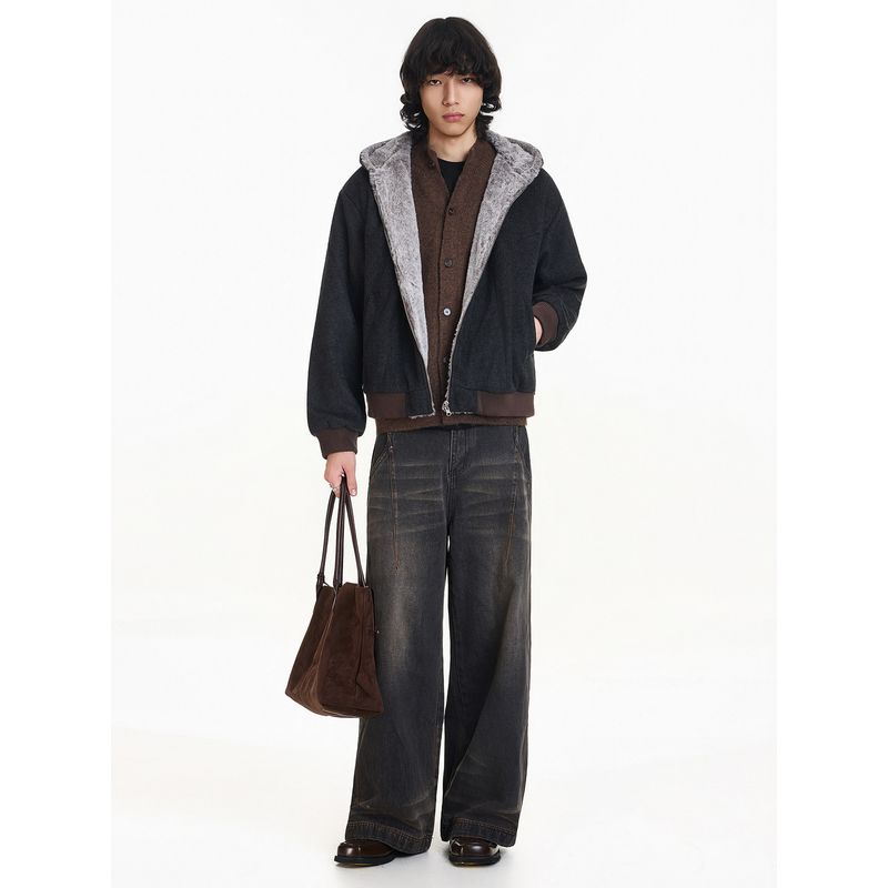 Blaexit American Retro Reversible Hooded Cotton Jacket for Men, Winter Thickened Woolen Coat