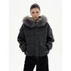 51 Hip-Hop American Retro Fur Collar Jacquard Hooded Knit Cardigan Jacket for Men, Winter Fair Isle Puppy Sweater for Women
