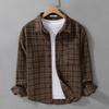 Autumn and Winter Brushed Woolen Gingham Men's Clothing Long Sleeve Shirt Coat Japanese-Style Retro Men Casual Shirt Thickened New