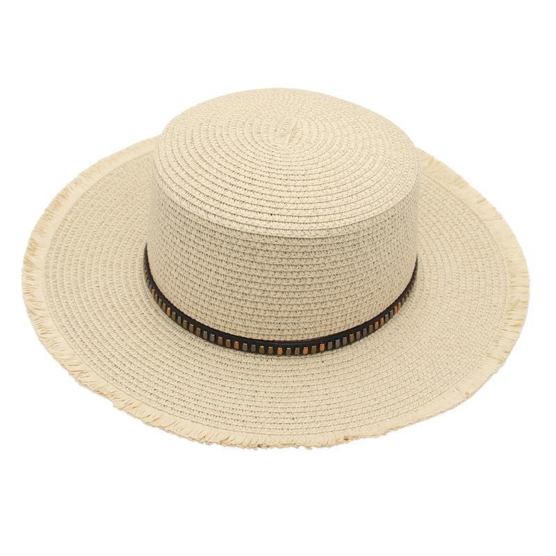 Beaded Flat Top Beach Hat Seaside Visor Rough Rafi Straw Hat Vacation Jazz Hat With Accessories