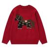 51 Hip-Hop Chinese Style Street Fashion Red Sweater for Men, Meaning "Instant Success," New Year's Zodiac Year Knitwear