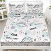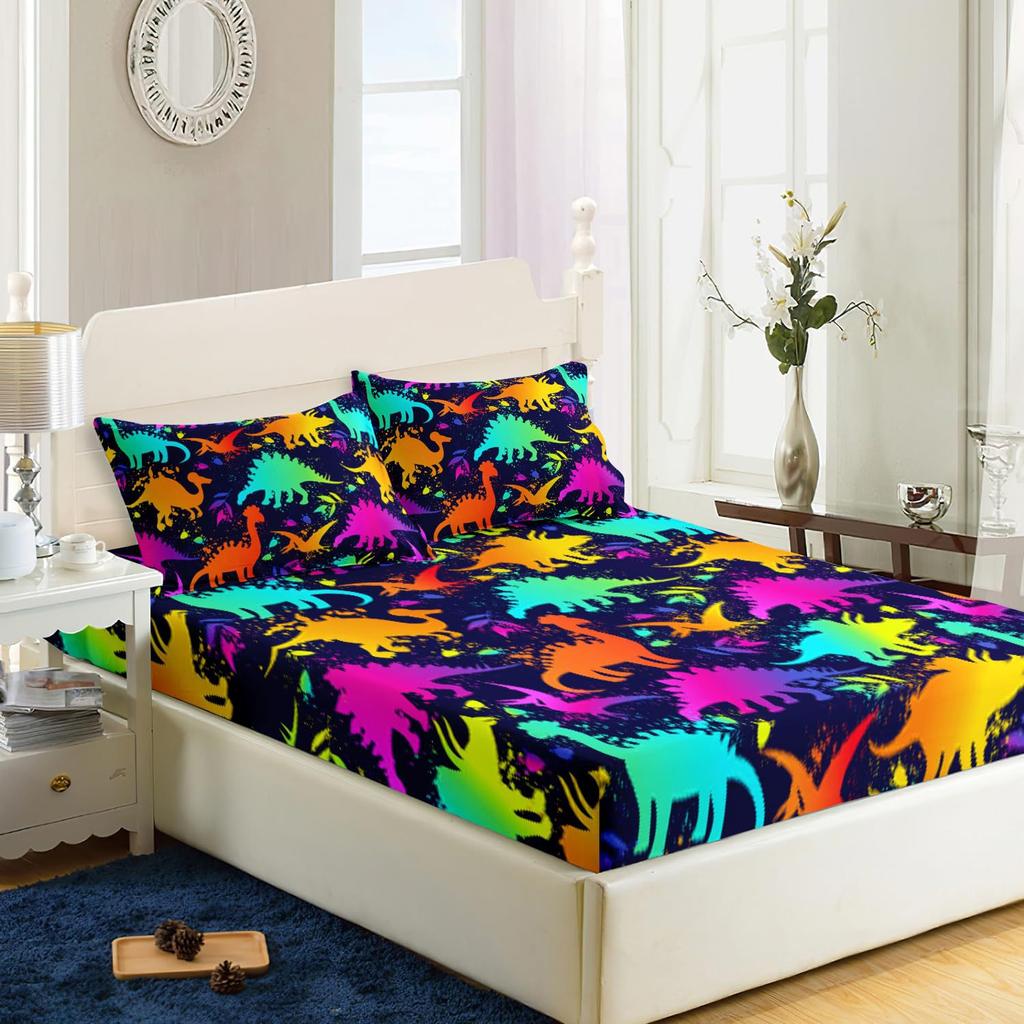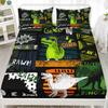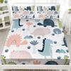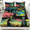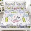 Mehrfarbiges Cartoon-Dinosaurier-Muster Bettmütze Dreiteiliges Digitaldruck Niedliches Muster Bettwäscheset