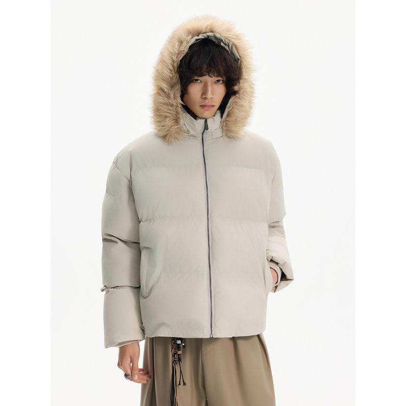 Blaexit American Style Detachable Fur Collar Parka Cotton Jacket for Men, Winter Thickened Warm Coat, Black Puffer Jacket