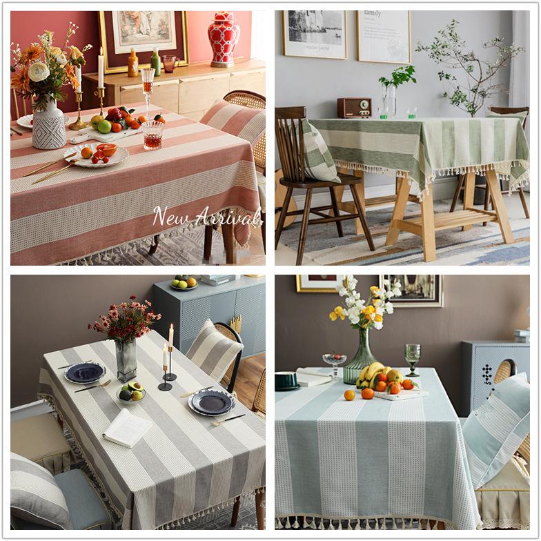 Ins Nordic Plain Striped Tablecloth Cotton And Linen Fringed Lace Dining Table Cover Party Tablecloth Square Table Ins Style