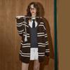 Coolhut Autumn and Winter New Striped Hooded Sweater Jacket, Lazy Color-Blocking Versatile Loose Women's Knitted Cardigan