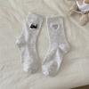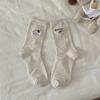 Autumn Ab Side Embroidery Animal Bow Cartoon Cotton Socks Dot Gauze Pile Socks Women'S Socks