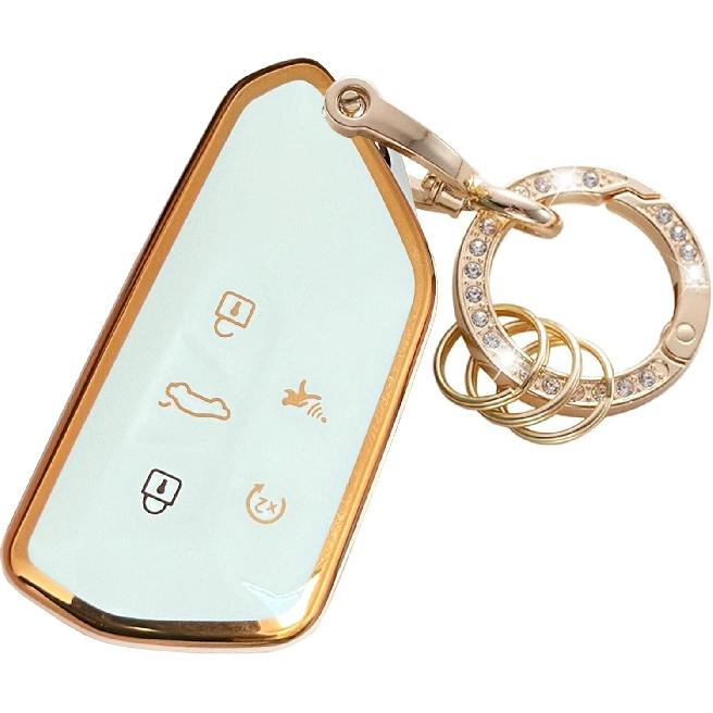 For VW Volkswagen Key Fob Cover Key Fob Shell With KeyChain Fit For VW ID4 ID3 MK8 Golf GTI Skoda Octavia Smart Key (Gold-White)