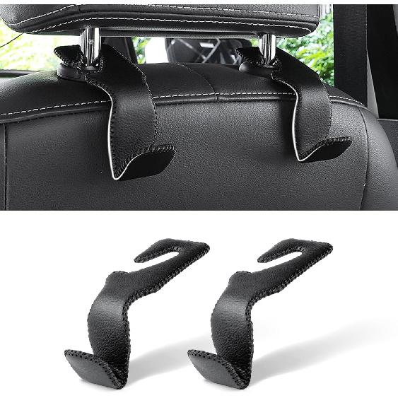 LivTee Black Superior Leather Car Seat Back Headrest Hook, Auto Seat Hook Hangers Interior Accessories For Purse Coats Umbrellas Grocery Bags