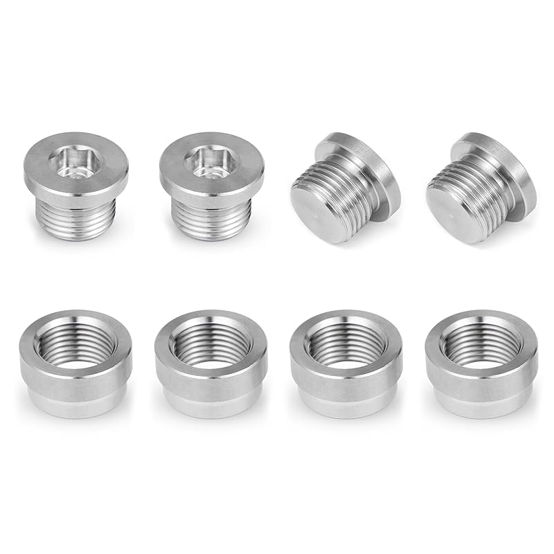 O2 Oxygen Sensor Bung And Plug 304 Stainless Steel M18-1.5,Oxygen Sensor Bung Stepped Style With Plug, Suppied By Hohnnyreet (2, Silver, M18 X 1.5)
