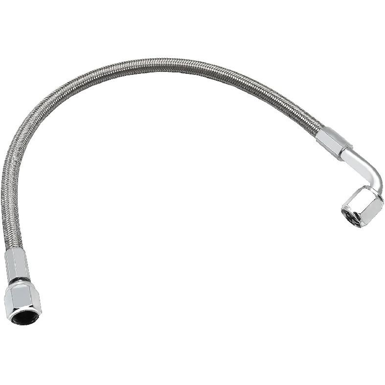 551871 4AN Turbo Oil Feed Line 12" Length Stainless Steel Braided AN4 90 Degree End Straight Hose End 4AN Pressure Stainless Remote Turbocharger Oil