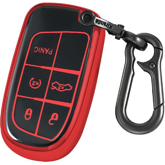 for Jeep Key Fob Cover with keychian,TPU Protection Key Case Compatible with RAM Grand Cherokee Renegade Chrysler Durango Journey Smart Remote