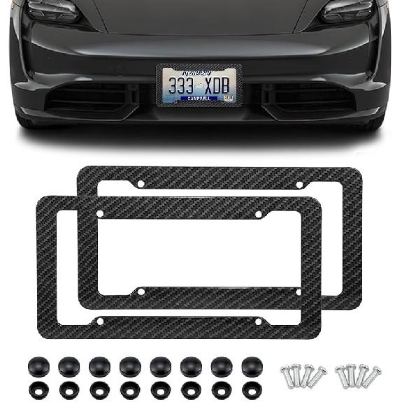 2 Pieces Carbon Fiber License Plate Frame Car Decor Accessories, License Plate Cover License Board Frame Universal Car Necessities With Fasteners