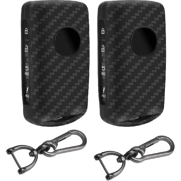 2Pcs 4 Buttons Silicone Rubber Key Fob Cover Compatible With 2025 2024 Mazda 3 6 CX-3 CX-5 CX-9 CX-30 CX-50 CX-90 MX-5 Miata MX-30 EV Carbon Fiber