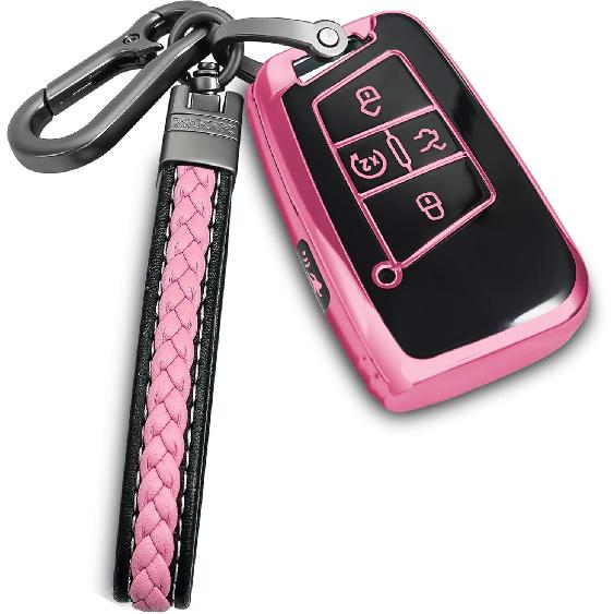 for Volkswagen key fob cover with metal/leather keychain,TPU 5 Buttons Key case,compatible with Tiguan Atlas Jetta Passat Golf Alltrack Remote smart