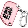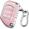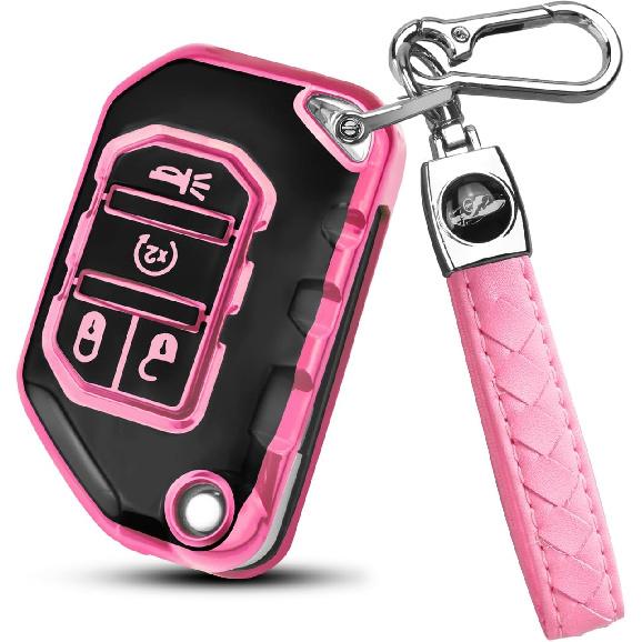 QBUC For Jeep Key Fob Cover With Keychain Compatible With Jeep Wrangler JLU JL Gladiator Rubicon JT Car Flip Key (Pink)