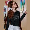 Coolhut American Retro Letter Print Loose Round Neck New Women's T-Shirt Casual Long-Sleeved Top