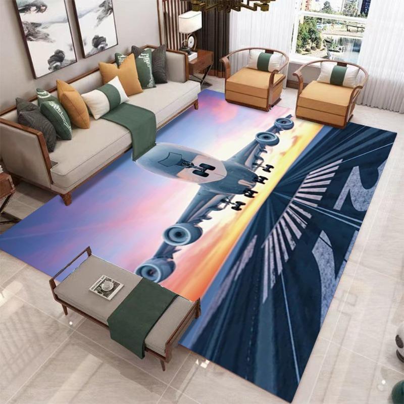 Large Airplane Take off Carpet Pink Purple Gradient Sky Clear Runway Details Living Room Area Rug Match Light Gray Home Decor