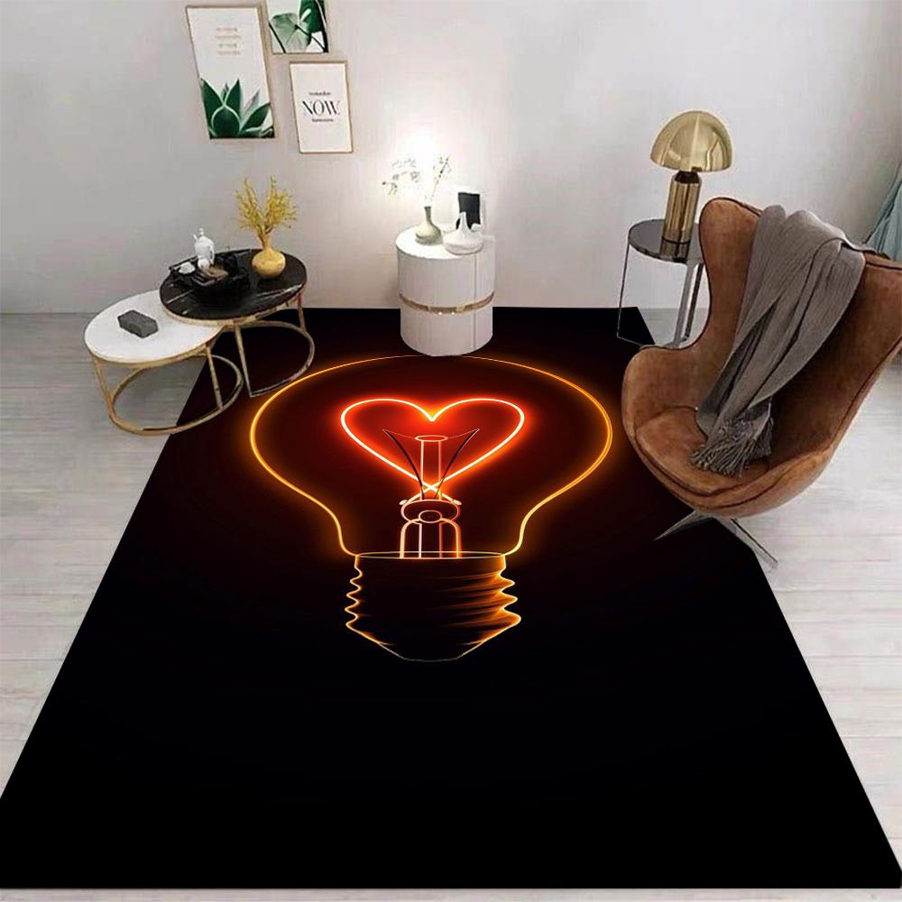 Neon Glühbirne Teppichmatte Teppich Herzform Leuchtendes Muster Modern Hintergrund Heimdekoration Wohnzimmer Schlafzimmer Fußmatte