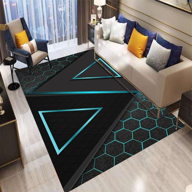 Geometrischer Teppich im Gaming-Stil für das Wohnzimmer Fluoreszierendes Farbdesign Innen-Heimdekoration Teppich für große Flächen Bodenmatte für Tech-Home