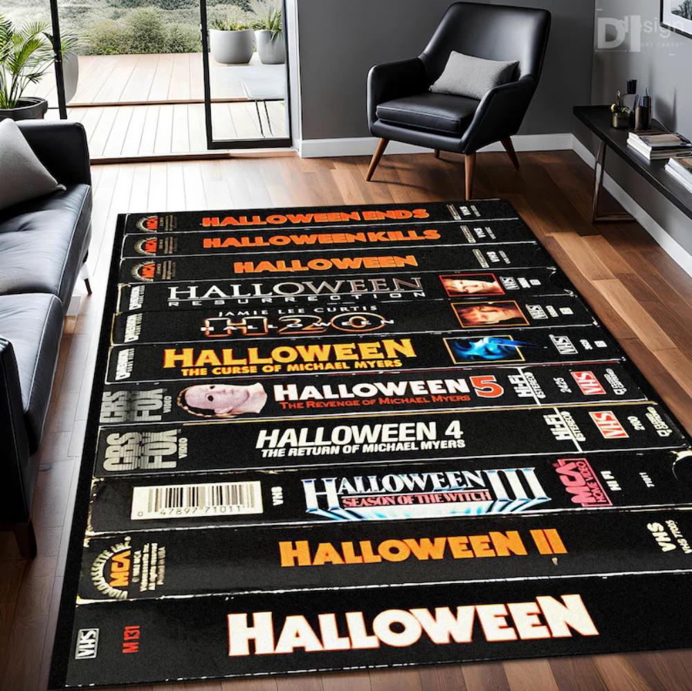 1 Stück Retro Horror VHS Film Filme Großer Teppich Retro Teppich für Wohnzimmer Schlafzimmer Man Cave Spielzimmer Bodenmatte Rutschfest Dekor