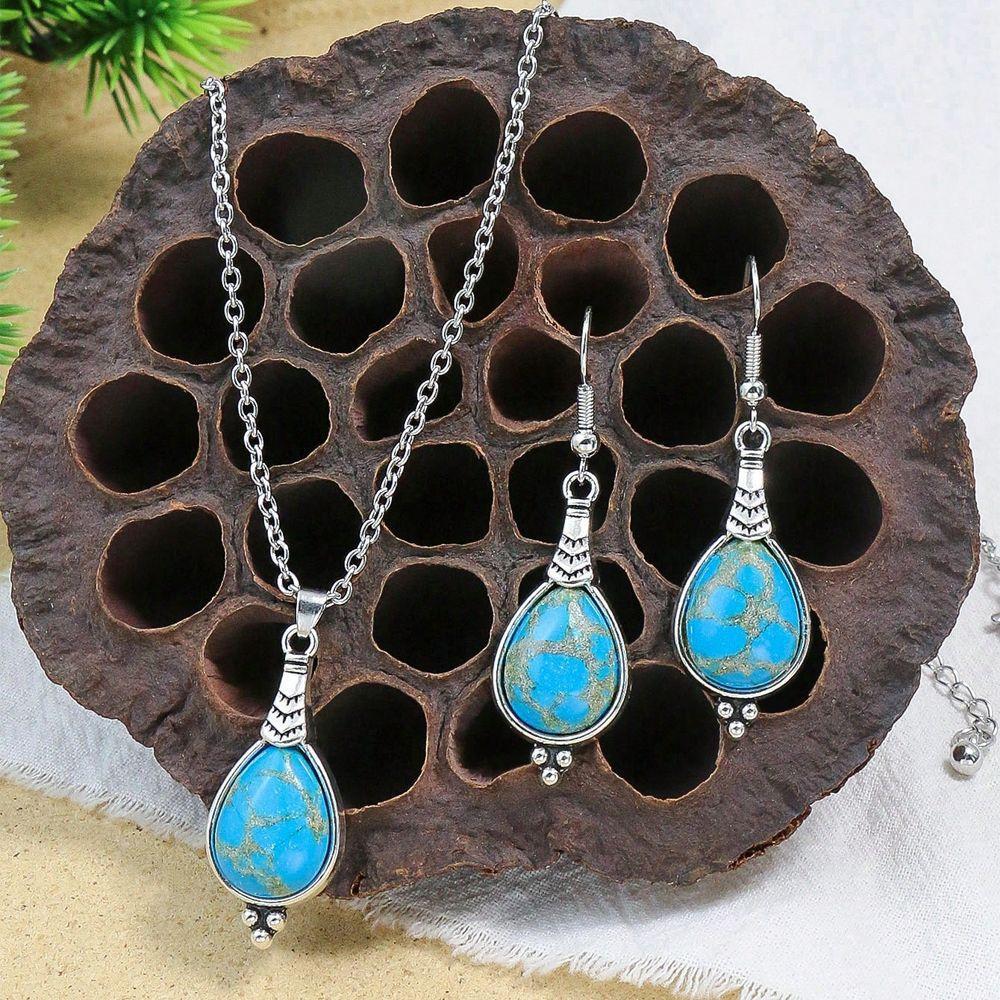 Heißer Verkauf Ohrringe Halsketten Set Rissiger Stein Inlay Stilvoll Einfach Ethnisch Stil Zubehör