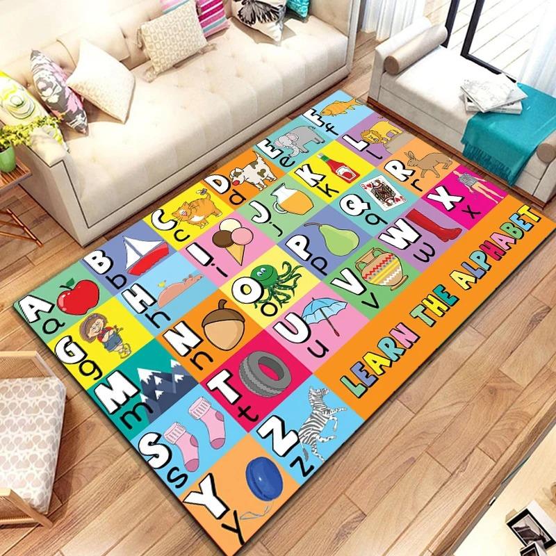 Alphabet Lernteppich Matte Teppich ABC Buchstaben Zahlen Tiere Formen Pädagogisch Kinder Heimdekoration Bodenmatte Schlafzimmer Dekor