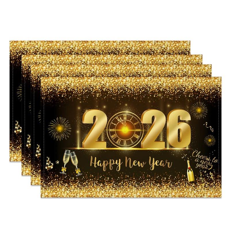 4/6/8 Stück Neujahr Glitzer Platzset Feuerwerk Design Festliche Esstischdeko Schimmernde Feier Weihnachtsessen Matte