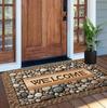 Stone Patterned Welcome Door Mat with A "welcome" Design for Farmhouse and Home Entrance The Front Door Welcome Mat Decoration