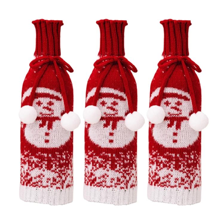 Set of 3 Festival Knitted Wine Bottle Sleeves With Gradual Color Featuring Santa, Snowmans, and Reindeers Wine Bottle Cover