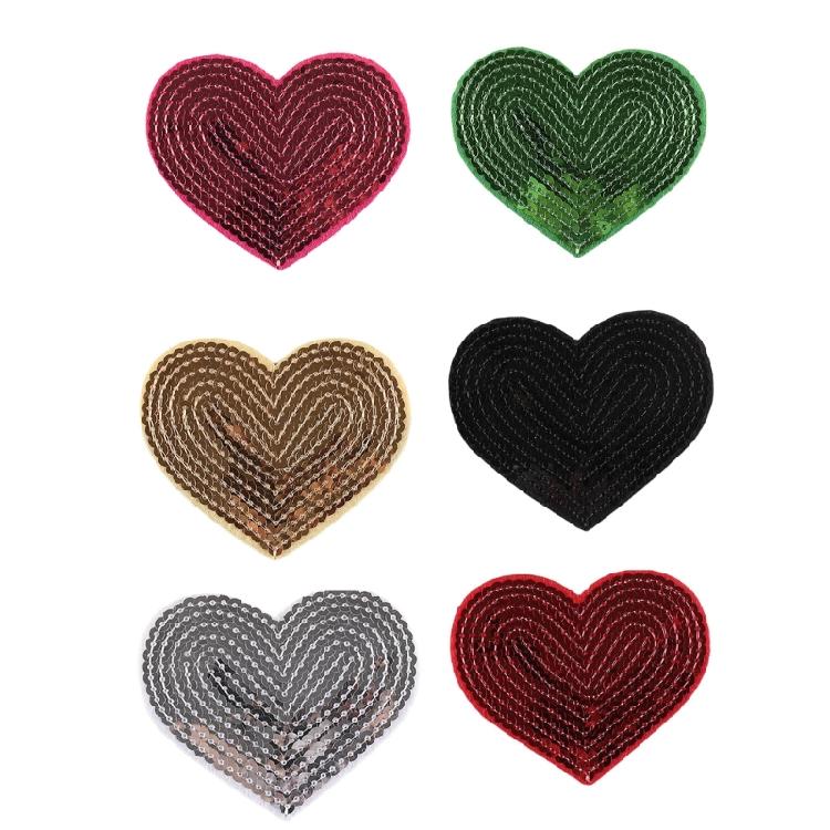 10 Pcs Embroidered Patches Heart Shape Iron on Patches Sewing on Applique Sequins Patches for Hat