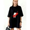 Übergroßes T-Shirt Schwarz Niedliche Katze mit Herz Liebesdruck Freizeitkleidung für Damen