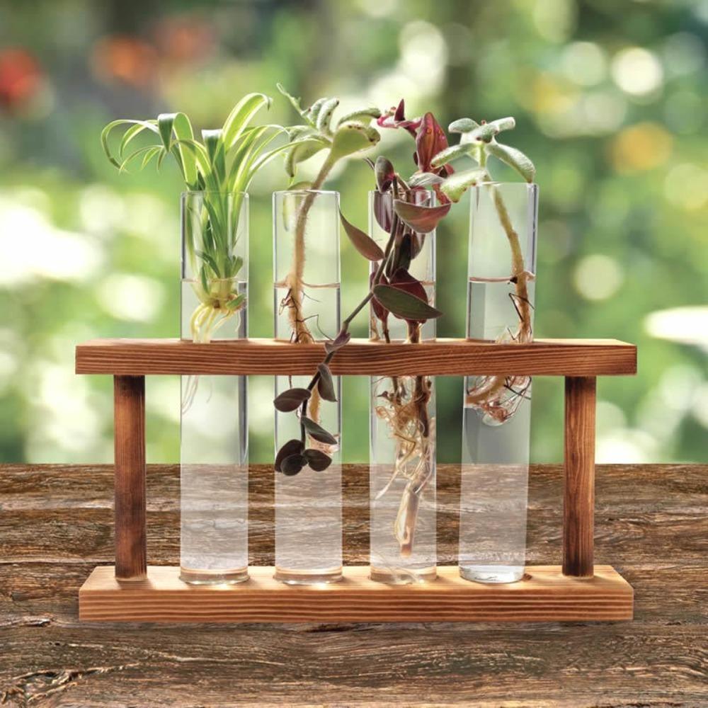 Modern Nordic Wooden Frame Hydroponic Test Tube Vase Hydroponic Green Plant Container Creative Crafts Decoration for Home Office