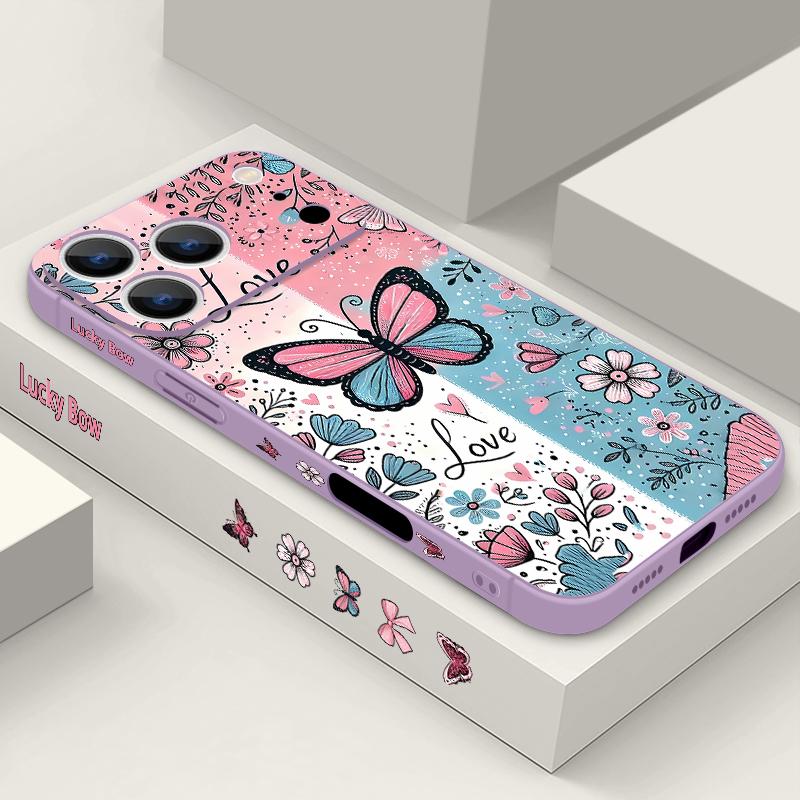 For iPhone 17 Pro Max Case Blue Pink Butterfly Floral Pattern TPU Silicone Soft Cover For iPhone 16 Pro Max 15 14 13 12 11 16E Air
