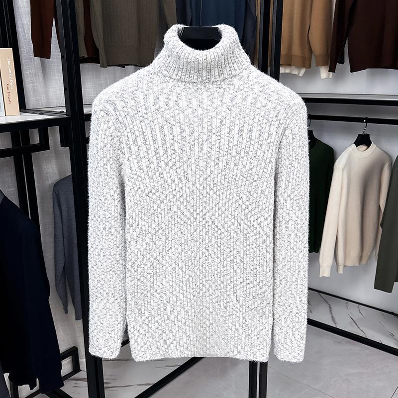 New Autumn Winter Warm Turtleneck Wool Blend Fleece Lined Fashion Thickened Knitwear Men Loose Pullover Sweater